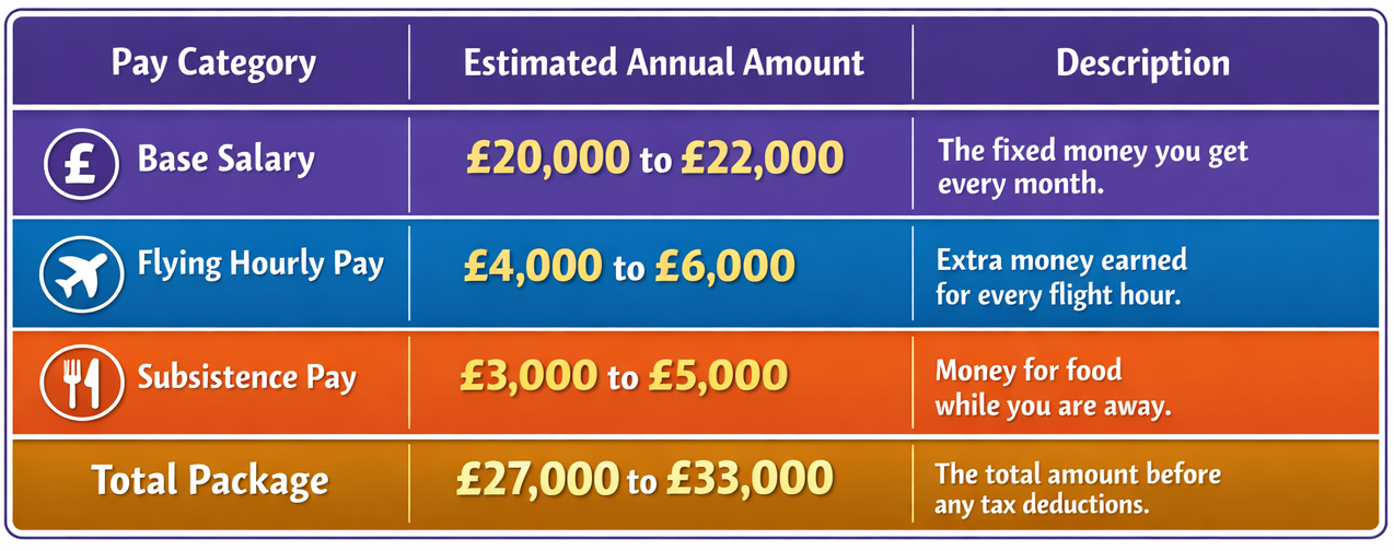 Therefore, your total monthly income will be higher than the base pay alone. The airline gives subsistence allowances for meals during overnight stays. Moreover, BA pays you during initial training, which usually lasts six to eight weeks in London. This means you can start earning immediately without needing extra savings.