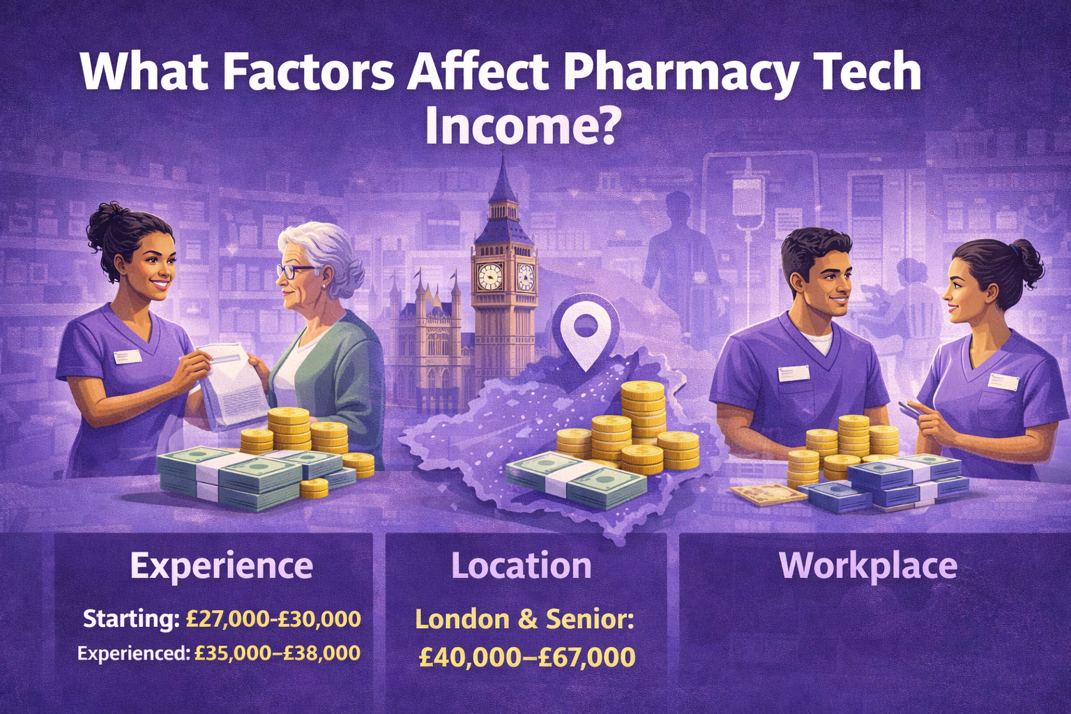 In 2026, pharmacy tech income in the UK depends on experience, location and workplace. Starting pay is usually £27,000–£30,000. Experienced technicians earn £35,000–£38,000, and senior or London jobs can reach £40,000–£67,000.
