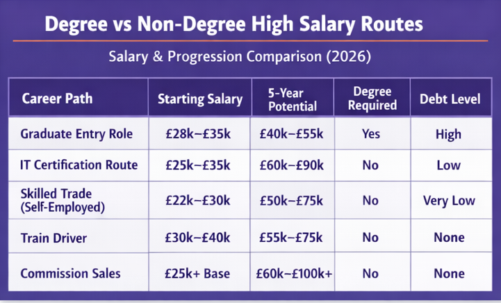 Comparison Table: Degree vs Non-Degree High Salary Routes